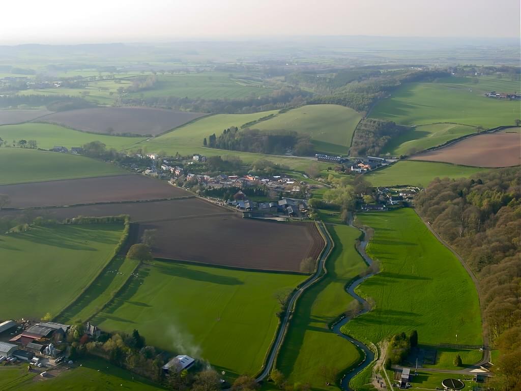 Above: The river Perry winding north towards Platt Bridge and Brownhill